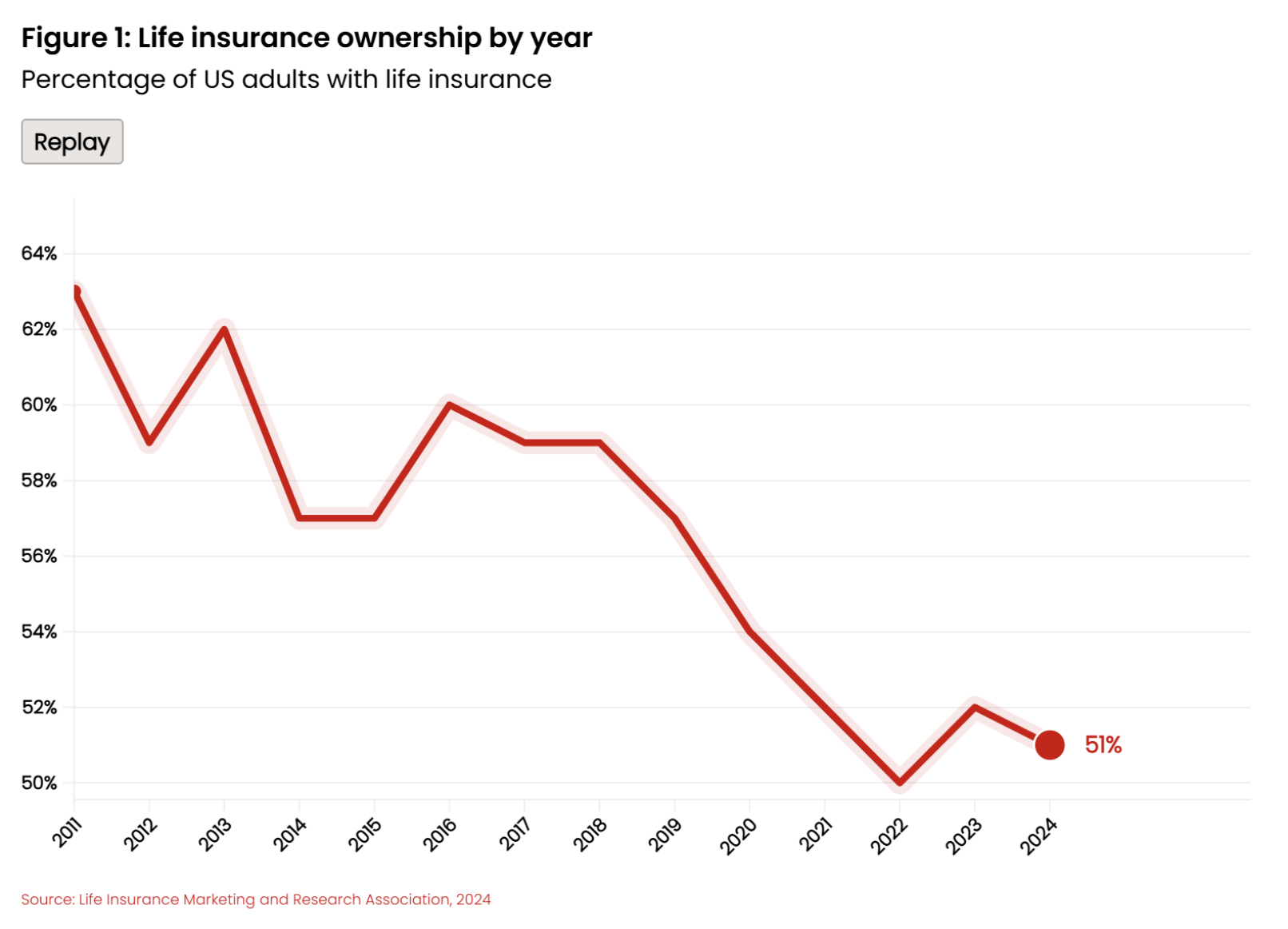 This decline is not due to lack of intent. More than a third (39%) of consumers said in a 2023 U.S. survey they intend to purchase life insurance in the coming year, with higher numbers for Gen Z (44%). Yet those intentions are not turning into actual purchases in sufficient numbers to halt or reverse declining sales.